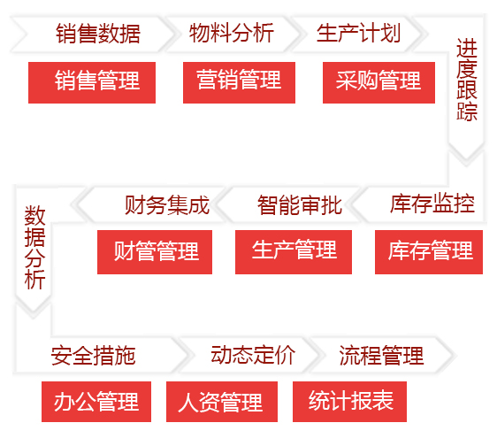 1)闭环的制造业一体化ERP管理系统(包括:设计管理、销售管理、采购管理、仓储管理、生产管理、人力资源管理、办公项目管理、财务管理、售后管理。)